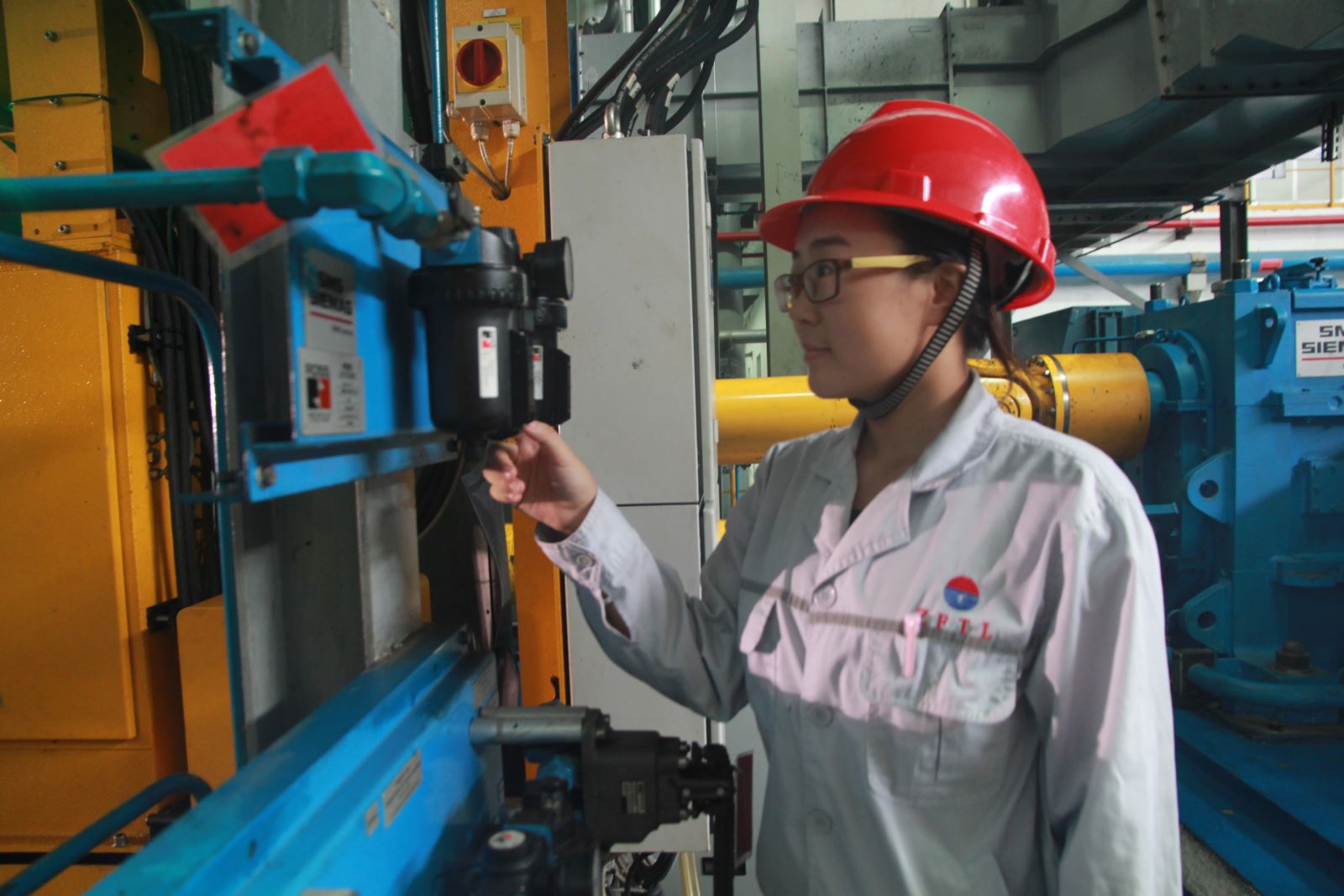 善學者能,多能者成。軋機設備調(diào)試由ABB公司人員主導,但張潔卻不愿當看客,她主動參與進去,和男同事們一道深入現(xiàn)場,從最基本的泵站沖洗線路改造及現(xiàn)場I/O點校對做起,認真配合ABB公司調(diào)試人員做好設備的調(diào)整和參數(shù)的優(yōu)化工作。調(diào)試期間,每天在現(xiàn)場蹲點調(diào)試,已成為她的“規(guī)定動作”,她與ABB公司調(diào)試人員溝通交流,掌握第一手資料;堅持“最早來、最晚走”是她的工作常態(tài),為了不錯過調(diào)試中的任何學習機會,她把自己的婚期一推再推。