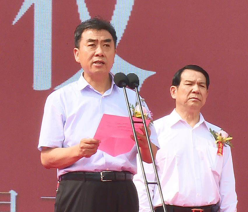 鞏義市委常委、市工業(yè)領(lǐng)導(dǎo)小組組長(zhǎng)、市產(chǎn)業(yè)聚集區(qū)管委會(huì)主任梁險(xiǎn)峰宣布項(xiàng)目開(kāi)工