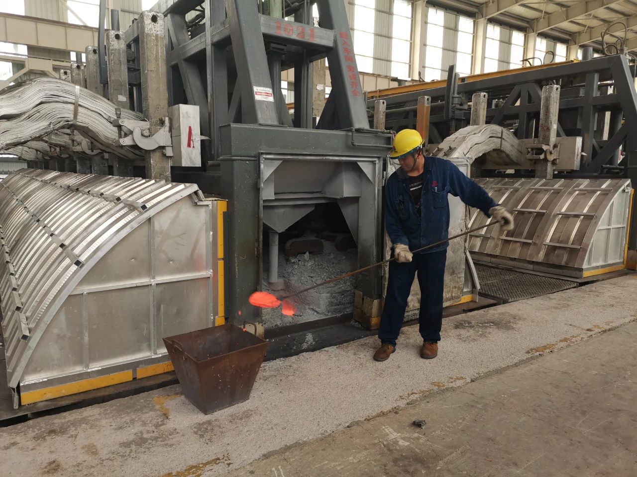 △ 換極前期準(zhǔn)備,鋪設(shè)鐵皮防掉料