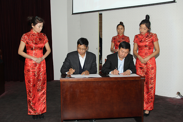 豫聯(lián)集團(tuán)董事長(zhǎng)賀懷欽與中孚高精鋁公司總經(jīng)理馬文超簽訂2016年目標(biāo)責(zé)任書