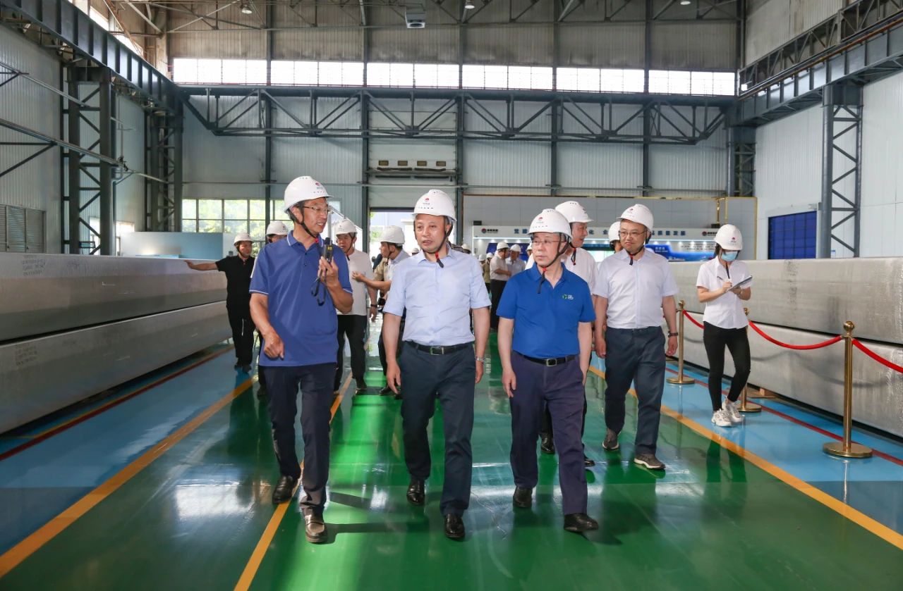 在豫聯(lián)集團(tuán)高精鋁生產(chǎn)現(xiàn)場(chǎng),中孚實(shí)業(yè)董事長(zhǎng)馬文超向調(diào)研組介紹了企業(yè)產(chǎn)業(yè)規(guī)模、綠色發(fā)展以及鋁精深加工生產(chǎn)工藝、裝備技術(shù)、產(chǎn)品市場(chǎng)等情況。