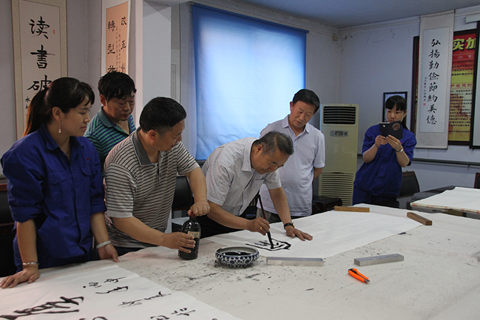 “近距離感受書協(xié)同志們的現(xiàn)場寫作,真是開眼界了!”“現(xiàn)場還給我進行了書寫指導(dǎo),實在是太高興了!”公司書法愛好者爭相與書協(xié)同志進行交流,仔細(xì)品評,現(xiàn)場氣氛熱烈融洽。