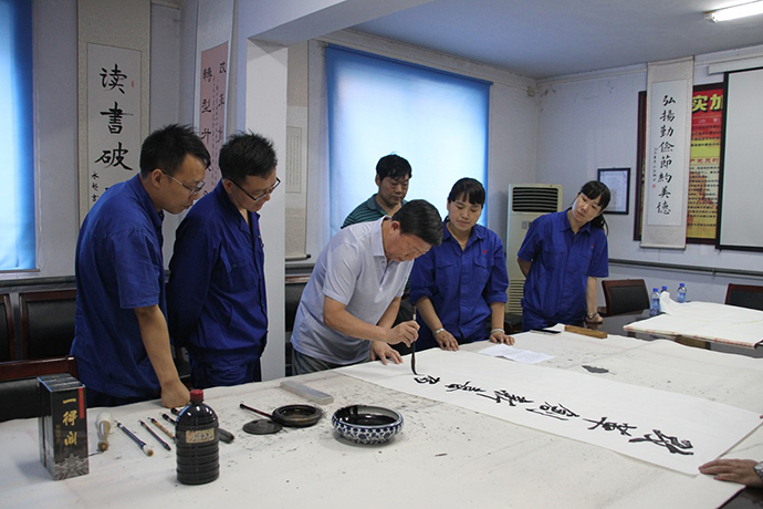 在創(chuàng)作過程中,大家或胸有成竹、一氣呵成,或稍加思索、一揮而就。行書、楷書、隸書、篆書,形式多樣,清秀、灑脫、嚴(yán)謹(jǐn)、拙樸,風(fēng)格各異,均表現(xiàn)出了高超的書法藝術(shù)水平。公司書法愛好者紛紛駐足欣賞,完全陶醉在行云流水般的揮毫之間。每當(dāng)一幅作品完成時,都贏得熱烈的掌聲和叫好聲。