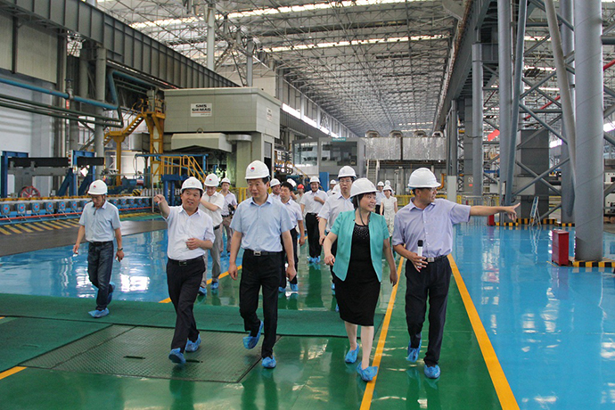 在豫聯(lián)工業(yè)園區(qū)觀景臺,賀懷欽董事長首先向王寶玉市長一行介紹了豫聯(lián)工業(yè)園區(qū)的基本情況。隨后,王寶玉市長查看了電力公司集控室、鋁業(yè)400KA生產(chǎn)線,并興致勃勃地深入轉(zhuǎn)型升級項目高精鋁公司生產(chǎn)現(xiàn)場,重點考察了生產(chǎn)工藝流程、高端市場開發(fā)、鋁精深加工產(chǎn)品應(yīng)用情況。