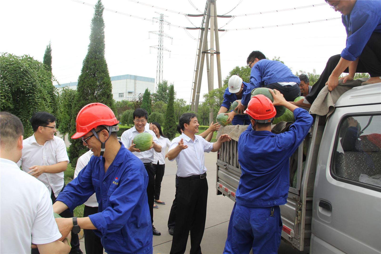 7月25日上午,受集團公司賀懷欽董事長委托,中孚實業(yè)總經(jīng)理張松江帶隊,集團公司有關(guān)領(lǐng)導、機關(guān)各部門人員組成慰問組,先后到鋁業(yè)公司、銀湖鋁合金公司、博奧公司、電力公司、高精鋁公司、炭素公司、熱力公司等11個單位,帶去16000斤西瓜以及夏桑菊、藿香正氣水、風油精、清涼油等防暑降溫用品,看望、慰問奮戰(zhàn)在高溫崗位的一線員工,讓員工在酷暑中感受到舒心的涼意。