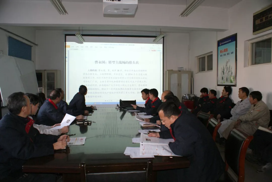 高精鋁四個(gè)支部分別通過政治學(xué)習(xí),組織黨員學(xué)習(xí)曹永國先進(jìn)事跡。生產(chǎn)現(xiàn)場(chǎng)各班組,利用班前會(huì)把曹永國同志的先進(jìn)事跡傳達(dá)到每位員工。