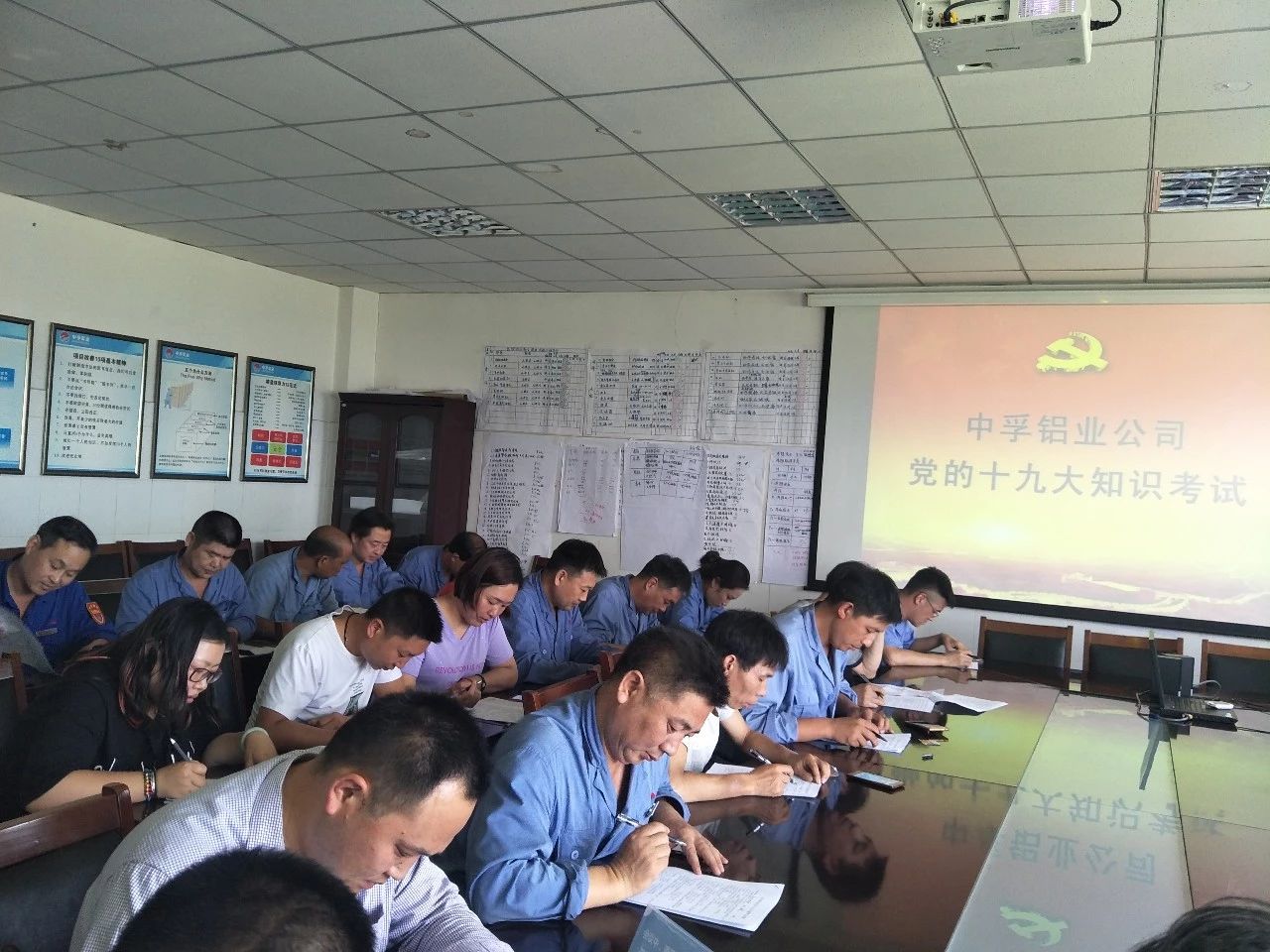 集團(tuán)公司按照“萬名黨員進(jìn)黨校,錘煉黨性鑄忠誠” 活動(dòng)要求,于6月21日下午,以抽查的形式,在鋁電辦公樓五樓會(huì)議室組織部分黨員進(jìn)行學(xué)習(xí)十九大精神知識(shí)閉卷考試,旨在檢驗(yàn)前一階段廣大黨員深入學(xué)習(xí)十九大精神的學(xué)習(xí)成果。公司各單位黨員代表150余人參加了考試。