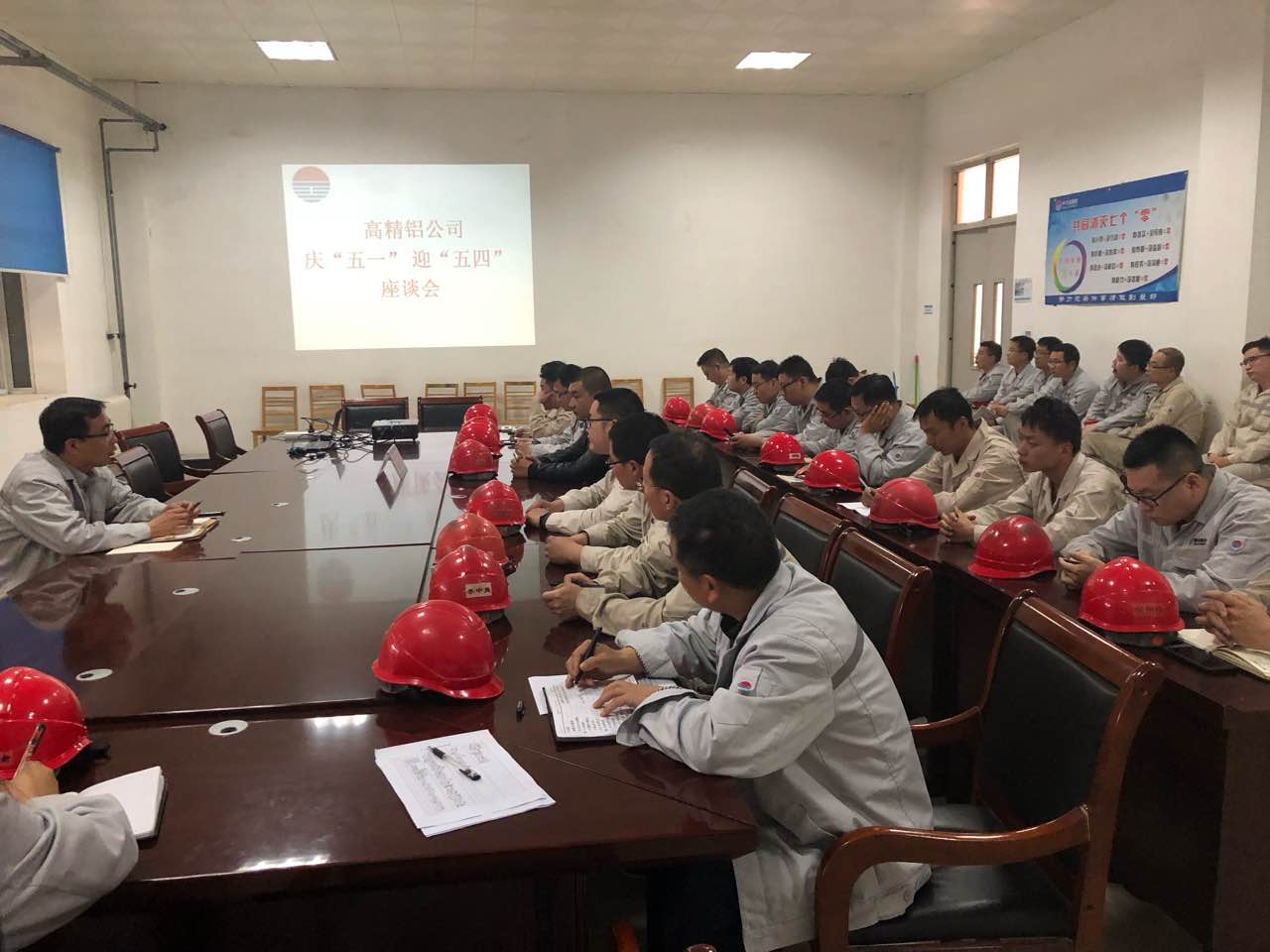 為大力弘揚勞模精神、工匠精神,進(jìn)一步激發(fā)廣大員工立足崗位爭先創(chuàng)優(yōu)的熱情,為公司圓滿完成生產(chǎn)經(jīng)營各項任務(wù)鼓勁加油,4月29日下午,中孚高精鋁材公司在生產(chǎn)區(qū)會議室召開了慶“五一”、迎“五四”座談會,集團(tuán)公司勞動模范,中孚高精鋁材公司勞動模范、技術(shù)比武優(yōu)秀個人和青年員工代表共40余人參加了會議。