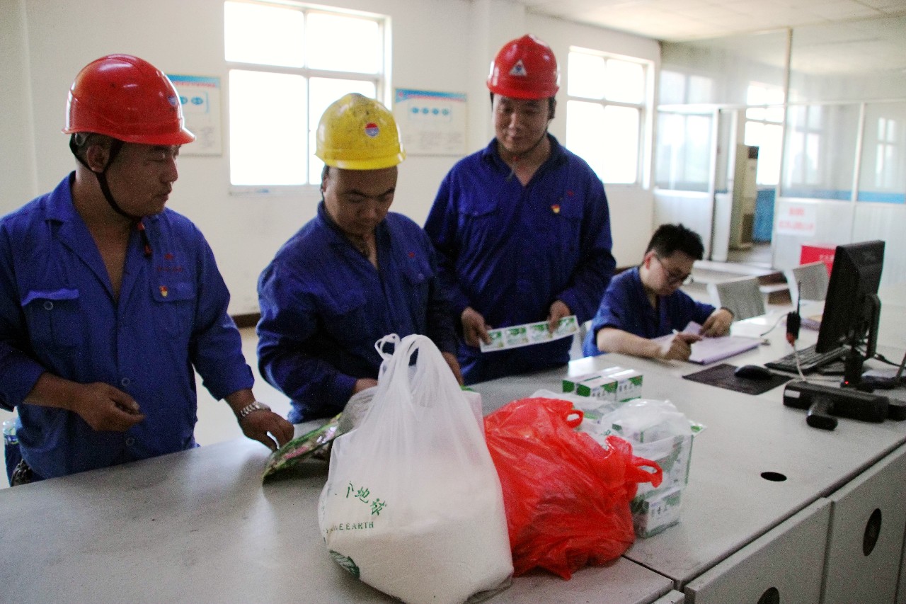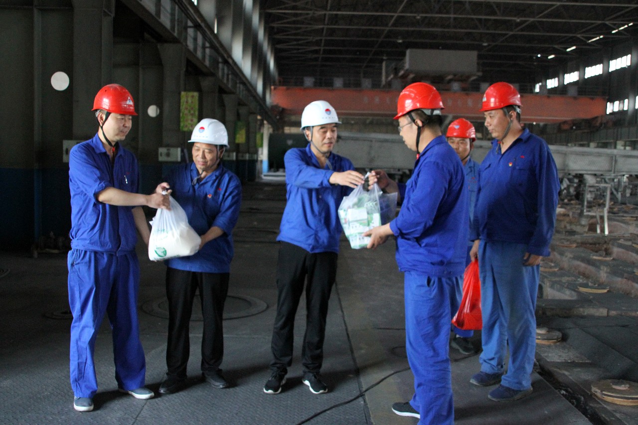 中孚炭素公司將冰糖、白糖、綠豆、藿香正氣水、涼茶等防暑降溫物品送到了一線員工手里,為他們帶來了陣陣清涼。
