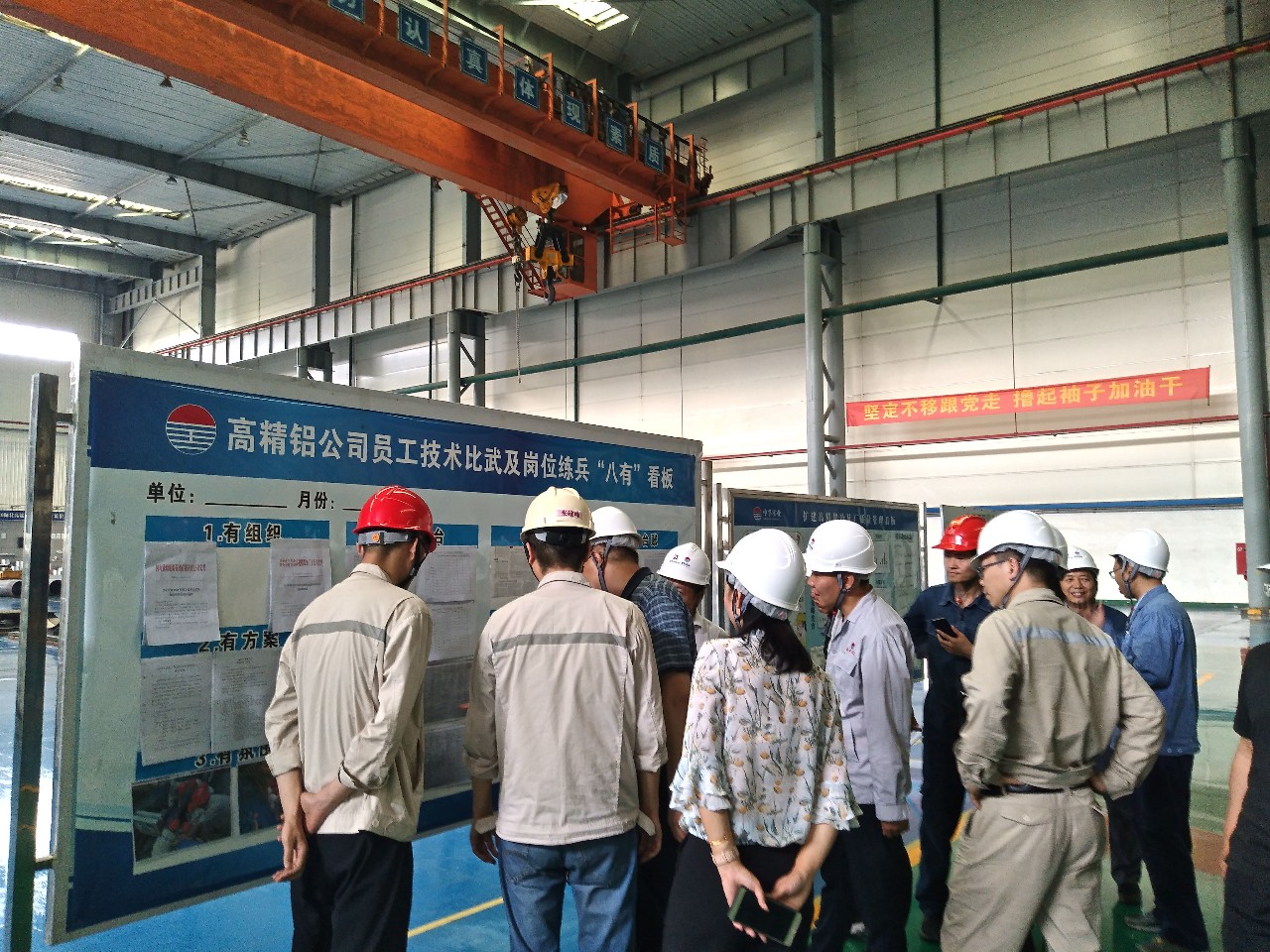 隨后,炭素公司、高精鋁公司分別以PPT形式匯報了本單位技術比武開展情況和典型做法;與會人員深入高精鋁公司冷軋現(xiàn)場進行了觀摩。觀摩之后,其他單位也分別匯報了本單位技術比武開展情況、目前存在的問題、下步工作計劃和有關建議。