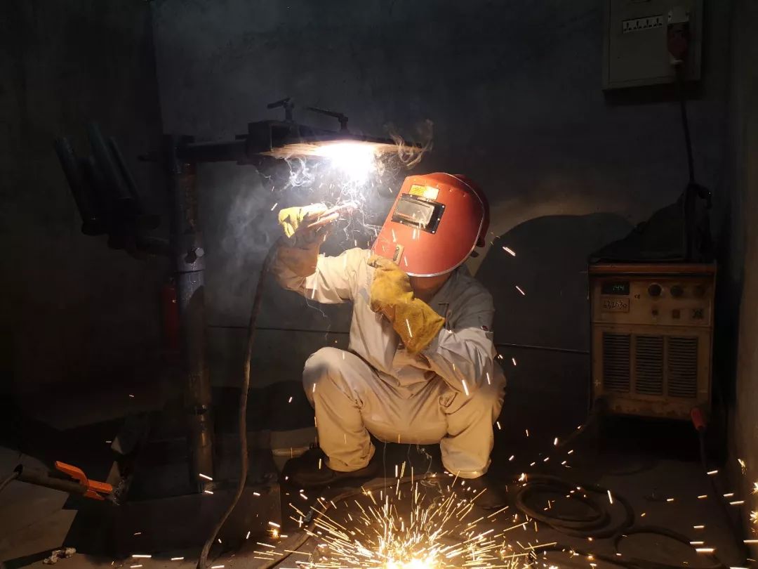 此次焊工實操比武分4組進行,參賽選手抽簽隨機分組,每個選手需要進行管對接45°加梅花障礙和板對接仰焊兩個項目,規(guī)定時間2.5小時,考試分焊前準備和正式焊接兩個步驟進行。
