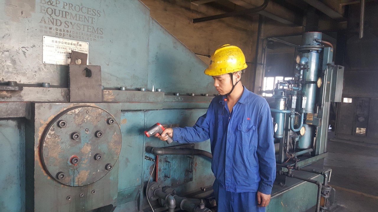 在中孚炭素公司成型車間崗位巡檢工手中,每個(gè)人都有三樣“神器”,那就是——機(jī)械聽診器、手持式紅外線測溫儀和便攜式激光測振儀。