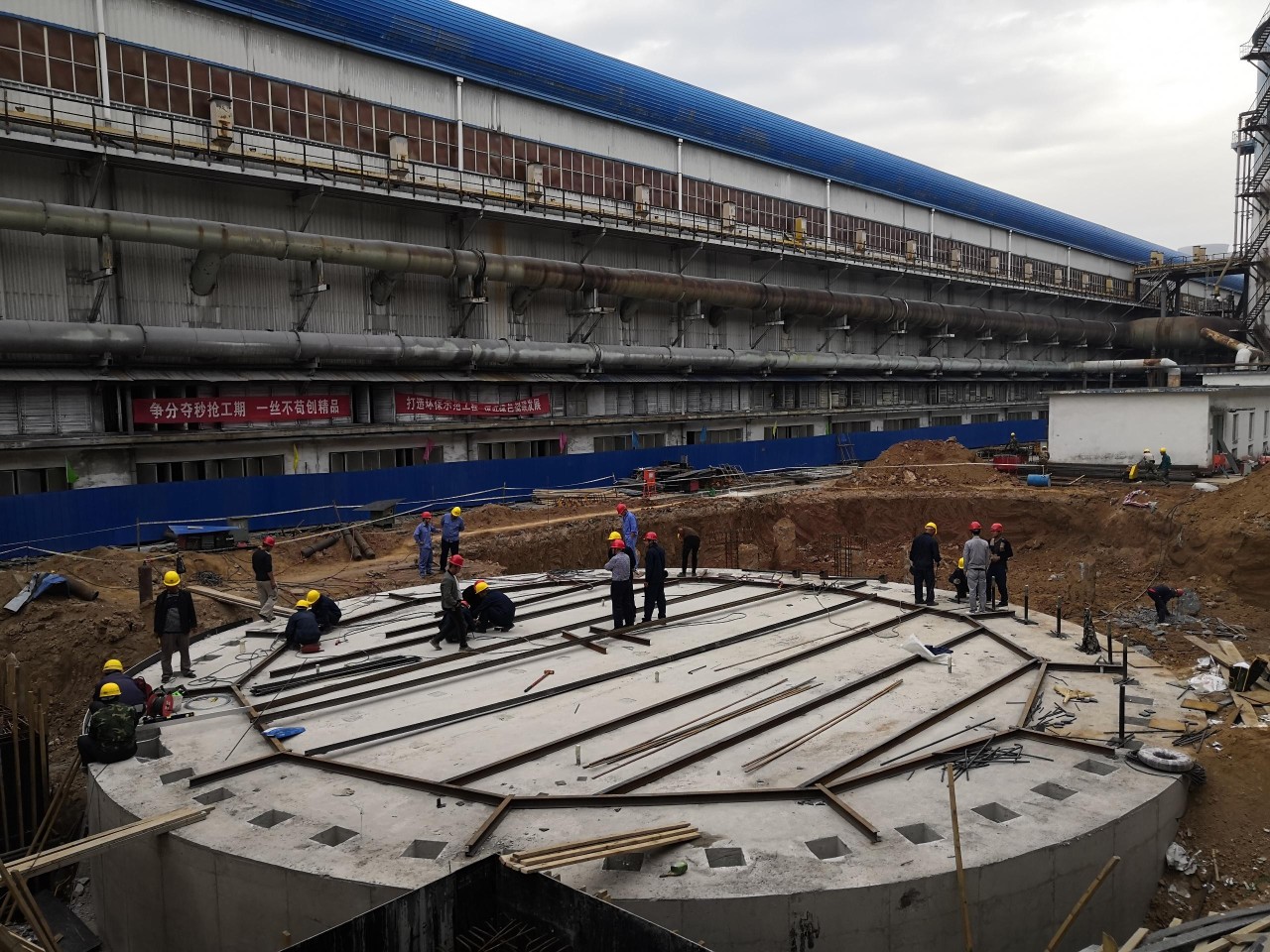 為加快脫硫塔基礎(chǔ)施工進度,9月6日開始,現(xiàn)場設(shè)備不停,所有工作人員輪班休息,24小時不間斷作業(yè),9月10日下午完成澆筑前所有準(zhǔn)備工作。脫硫塔基礎(chǔ)平臺澆筑大約需要380立方米混凝土,為保證工程質(zhì)量,只能使用泵車進行澆筑。9月11日,從零點一直到上午8點,整個澆筑過程持續(xù)8小時,脫硫塔基礎(chǔ)順利澆筑完成。目前,項目進入主體安裝階段,中孚鋁業(yè)公司嚴(yán)格按照計劃進度施工,嚴(yán)把工程質(zhì)量,全力做好現(xiàn)場安全施工等工作。
