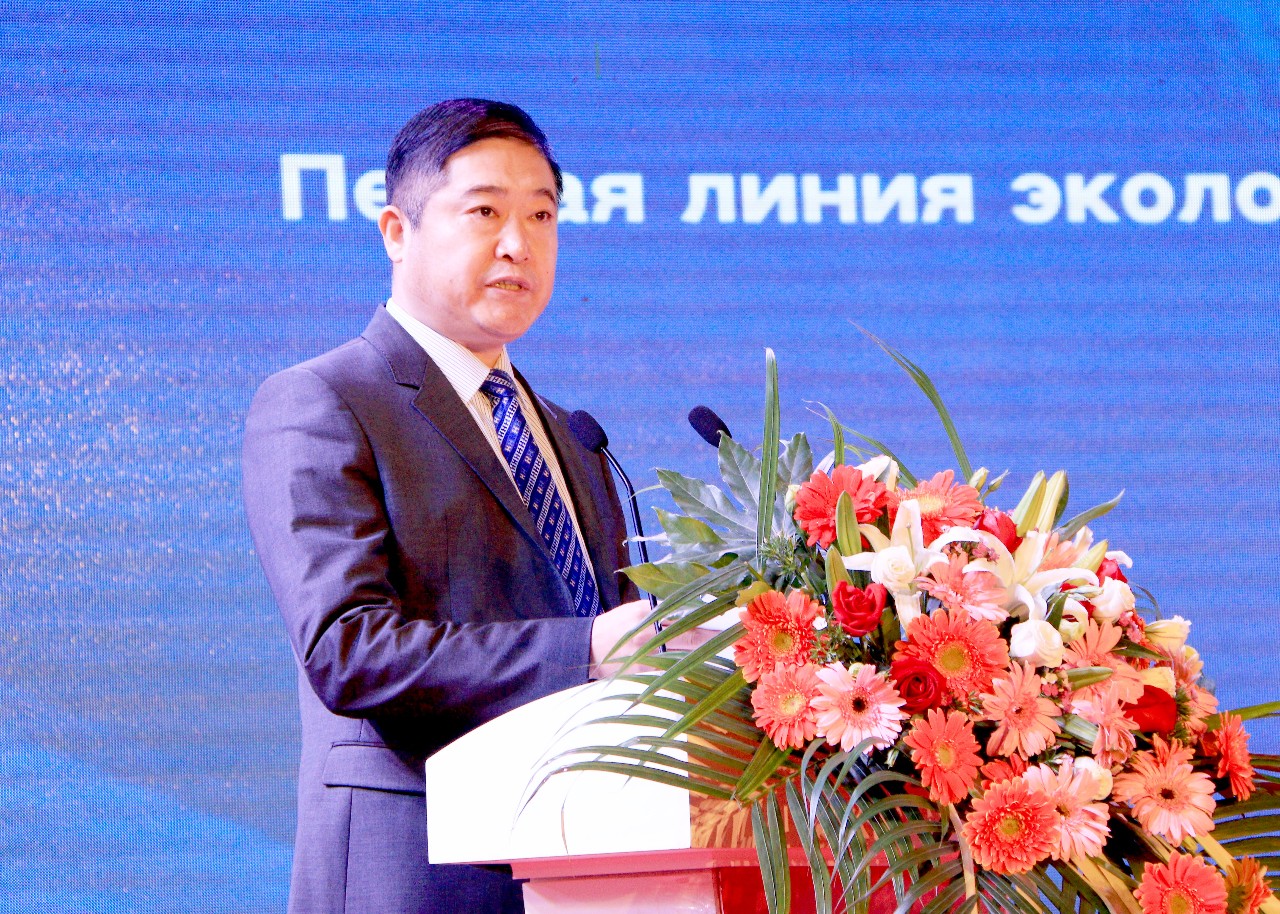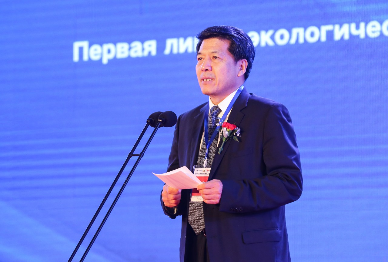 中國(guó)政府歐亞事務(wù)特別代表、前中國(guó)駐俄羅斯大使李輝在典禮上致辭