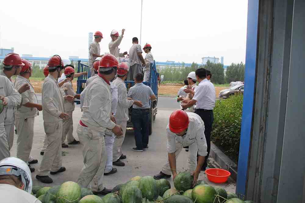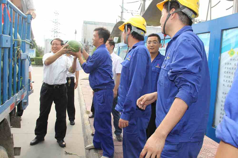 進(jìn)入7月以來(lái),持續(xù)高溫,熱氣襲人,但公司廣大員工不畏困難,戰(zhàn)高溫、斗酷暑,依舊堅(jiān)守崗位,為實(shí)現(xiàn)公司全年目標(biāo)而奮力拼搏。7月13日下午,受集團(tuán)公司張洪恩董事長(zhǎng)的委托,公司黨委書(shū)記馬路平帶領(lǐng)部分班子成員深入生產(chǎn)現(xiàn)場(chǎng),看望、慰問(wèn)奮戰(zhàn)在高溫一線的廣大員工,為他們送去了夏季防暑物品,為員工們帶來(lái)了絲絲“清涼”。