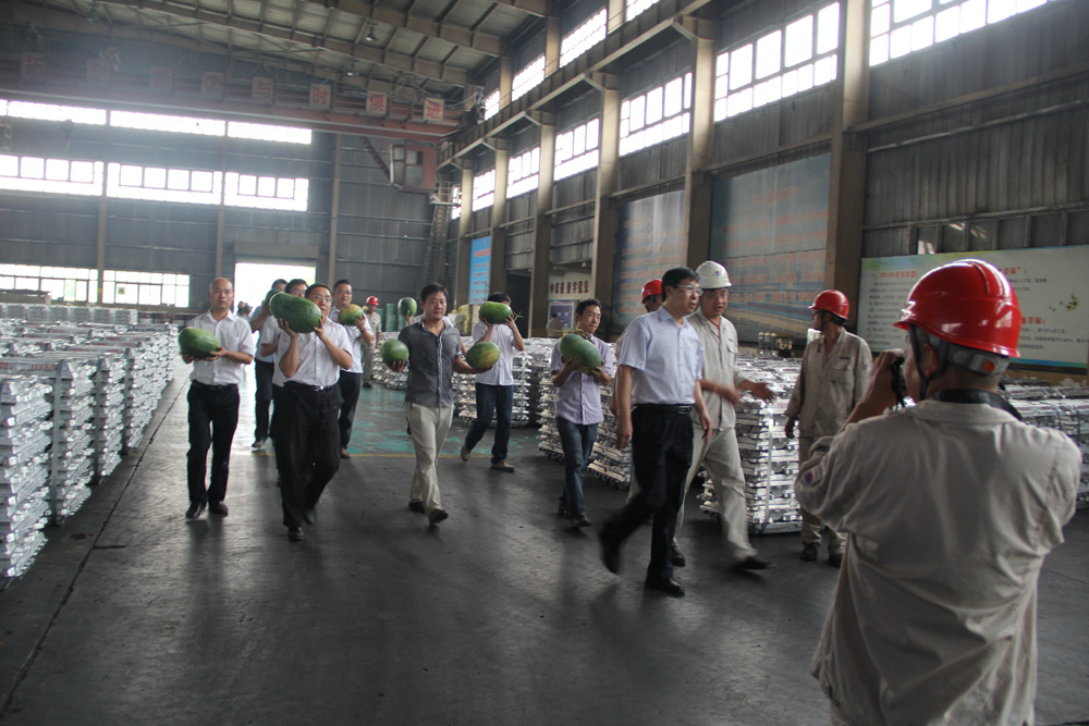 7月29日下午,受集團公司張洪恩董事長委托,薄廣利副總經(jīng)理帶領(lǐng)機關(guān)各職能部門人員20余人,先后到電力公司4號機組檢修現(xiàn)場、鋁業(yè)公司電解一分廠、銀湖合金鑄造車間和鋁灰處理車間、炭素公司焙燒一車間、高精鋁公司熔鑄車間參觀學習,帶去西瓜、藿香正氣水、人丹、風油精等防暑降溫用品,看望、慰問奮戰(zhàn)在高溫崗位的一線員工。