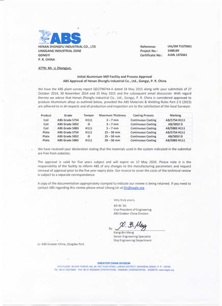 美國(guó)船級(jí)社(ABS)認(rèn)證證書