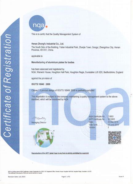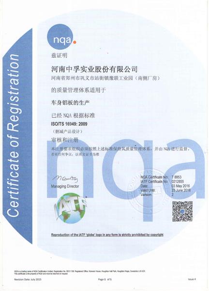 TS16949汽車板認(rèn)證證書