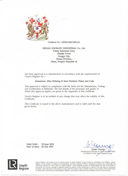 英國(guó)勞氏船級(jí)社(LR)認(rèn)證證書